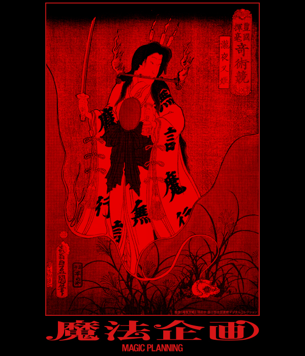 平将門の娘であり、妖術使いであり鬼女となった「滝夜叉姫」がプリントされた新作Tシャツです。