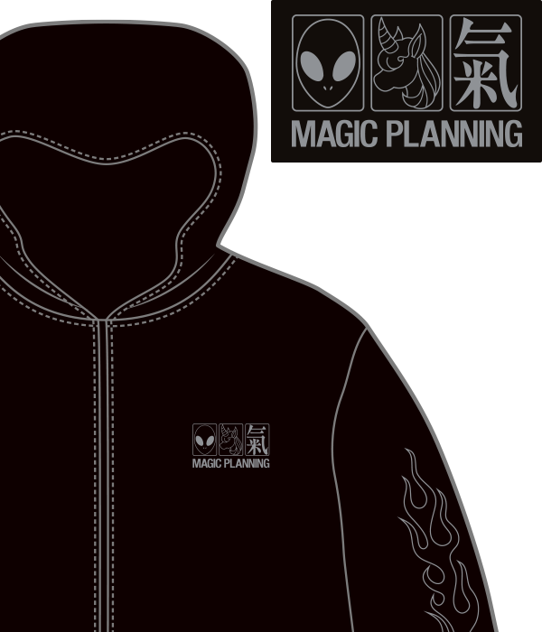 シンプルかつインパクト大のデザイン。胸元の三つのロゴがポイントです。